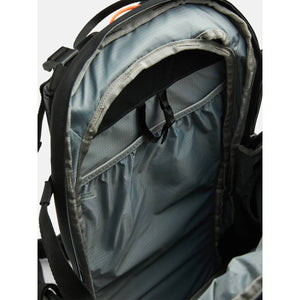 A-frame ski carry, Adjustable shoulder straps, Diagonal ski carry, Helmet net, Made without intentionally added PFAS, Side and back opening to main compartment, Snow safety gear compartment, Snowboard carry, Waist belt with zippered pockets, Whistle on sternum strap, YKK reversed coil zip