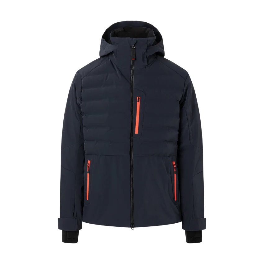 elasticated cord at the hem, fIRE+ICE rubber patch and small zip pocket on the left sleeve, width-adjustable sleeve hem with Velcro fastener, elasticated jersey cuffs with thumb hole on the sleeve hem, zip and mesh pocket inside, zipped detachable snow skirt