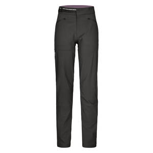 Developed for alpine adventures: The lightweight BRENTA PANTS for women mirror every movement and won’t shy away from contact with a rockface. The durable SHIELD LIGHT material withstands more than 80,000 abrasion cycles in the Martindale test, making it one of ORTOVOX’s most robust fabrics. The elastic 4-way stretch material guarantees optimum freedom of movement in the mountains and is also breathable, water resistant and quick drying. Thanks to their new, loose cut and higher waistband, these pants have a modern, comfortable fit. A hook on the integrated belt allows it to be fastened in just one move, and there is no need to unfasten it when taking the pants off or putting them on. Two spacious front zipper pockets provide plenty of room for money or keys, while the thigh pocket has a hidden zipper and taped seams for additional storage room and a clean look. Merino mesh inserts in the waistband and pocket areas provide added comfort. The BRENTA PANTS for women are PFC-free and climate neutral.