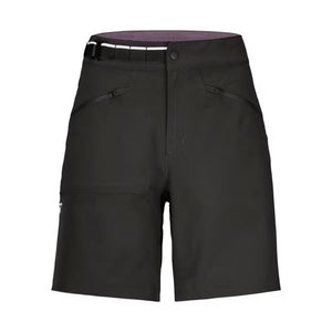 Developed for alpine adventures: The lightweight BRENTA SHORTS for women mirror every movement and won’t shy away from contact with a rockface. The durable SHIELD LIGHT material withstands more than 80,000 abrasion cycles in the Martindale test, making it one of ORTOVOX’s most robust fabrics. The elastic 4-way stretch material guarantees optimum freedom of movement in the mountains and is also breathable, water resistant and quick drying. Thanks to their new, loose cut and higher waistband, these shorts have a modern, comfortable fit. A hook on the integrated belt allows it to be fastened in just one move, and there is no need to unfasten it when taking the shorts off or putting them on. Two spacious front zipper pockets provide plenty of room for keys, money and a cell phone, while the thigh pocket has a hidden zipper and taped seams for additional storage room and a clean look. Merino mesh inserts in the waistband and pocket areas provide added comfort. The BRENTA SHORTS for women are PFC-free and climate neutral.