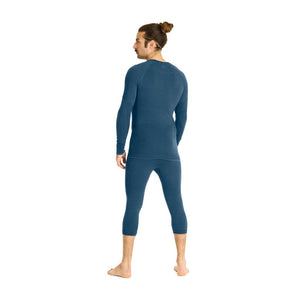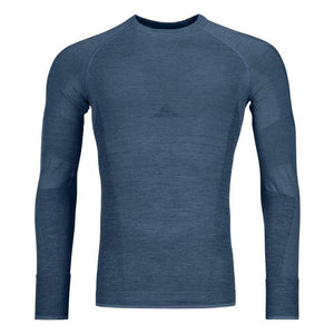 The 230 COMPETITION LONG SLEEVE for men helps you deliver top sporting performance with a whole new look – whether you’re on a ski tour, freeriding, or on a high alpine tour. The 230 MERINO COMPETITION line is produced using a seamless circular knitting technique so that when the weather gets cold and the going gets tough, every area of the body is covered by the right thickness of merino wool. The basic ribbed structure consists of 190 g/m² merino, giving the functional shirt elasticity for maximum freedom of movement. A particularly breathable mesh structure is used in heat spots, while 240 g/m² wool warms areas that are sensitive to the cold, such as the kidneys. This body-mapping principle allows for a close fit while providing maximum ventilation. At just 16.5 microns in diameter, the delicate merino fibers feel pleasantly soft against the skin and at the same time make the functional shirt quick-drying and very durable. The new color gradient from light to dark is created by knitting in mottled yarn and gives the functional shirt a special pattern thanks to the body-mapping structure. This puts the 230 COMPETITION LONG SLEEVE for men out in front when it comes to looks, too!