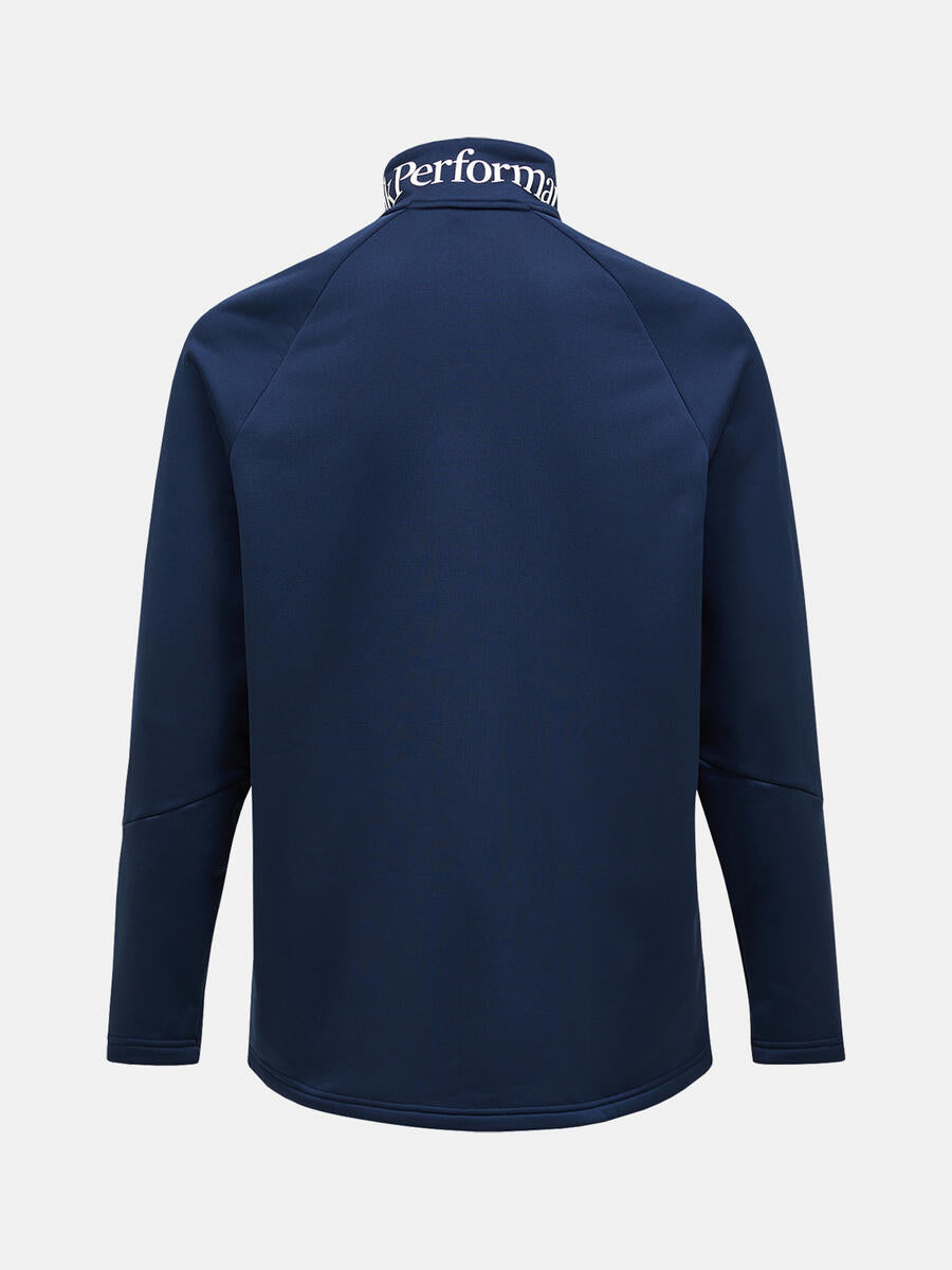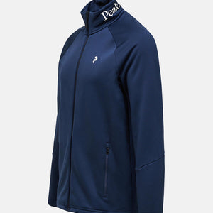 Full front with YKK coil zipper, Made without intentionally added PFAS, Midweight, 271 gsm flat fleece, soft brushed back that traps warm air. Dries quickly, P-logo print at chest, Peak Performance print on collar, Soft fleece lined chin protection, Stand up collar, Zippered hand pockets