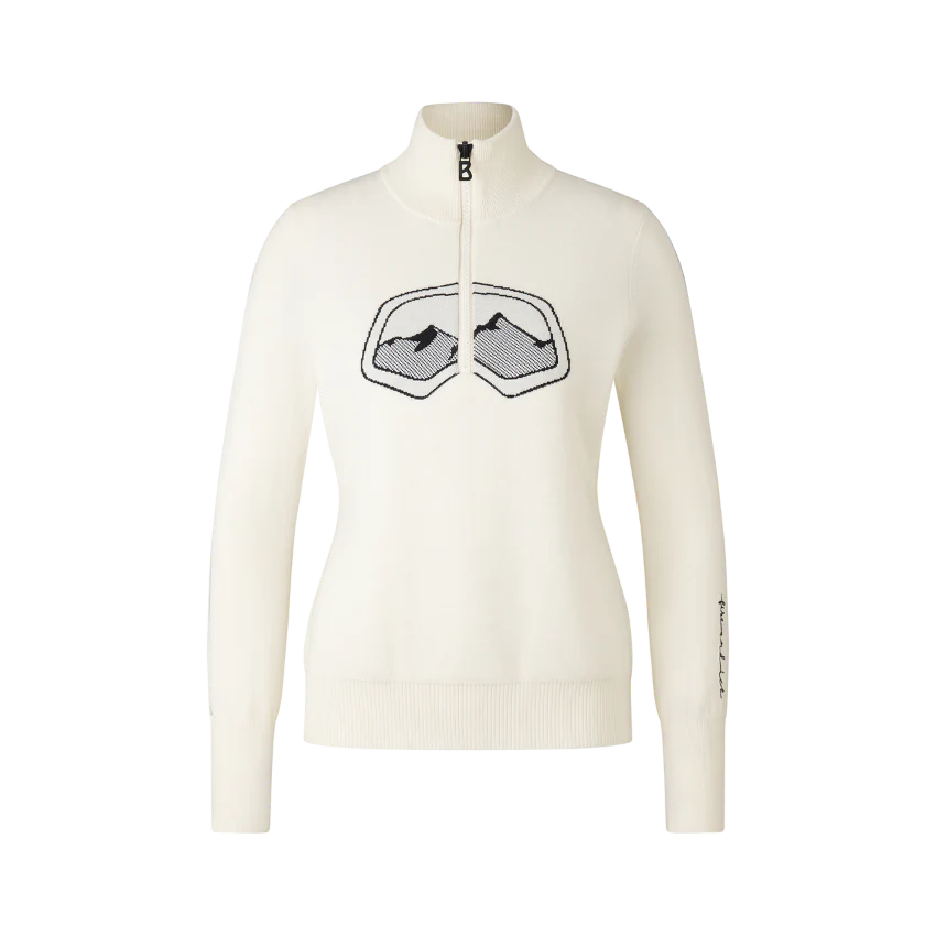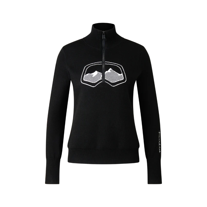 Knitted troyer in a regular fit featuring ribbed troyer collar with B-zipper, long sleeves with contrasting insert, ribbed cuffs, motif intarsia on the front and back Textile logo patch on the back FIRE+ICE stitching on the sleeve and ribbed hem