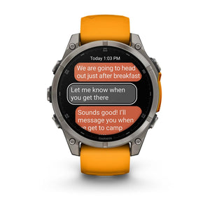 For serious athletes and adventurers who want to push beyond their limits, this premium sports GPS smartwatch is built to perform — with advanced strength training features, dive capability, an internal speaker and mic for voice features, a built-in LED flashlight and more.