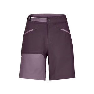 Developed for alpine adventures: The lightweight BRENTA SHORTS for women mirror every movement and won’t shy away from contact with a rockface. The durable SHIELD LIGHT material withstands more than 80,000 abrasion cycles in the Martindale test, making it one of ORTOVOX’s most robust fabrics. The elastic 4-way stretch material guarantees optimum freedom of movement in the mountains and is also breathable, water resistant and quick drying. Thanks to their new, loose cut and higher waistband, these shorts have a modern, comfortable fit. A hook on the integrated belt allows it to be fastened in just one move, and there is no need to unfasten it when taking the shorts off or putting them on. Two spacious front zipper pockets provide plenty of room for keys, money and a cell phone, while the thigh pocket has a hidden zipper and taped seams for additional storage room and a clean look. Merino mesh inserts in the waistband and pocket areas provide added comfort. The BRENTA SHORTS for women are PFC-free and climate neutral.