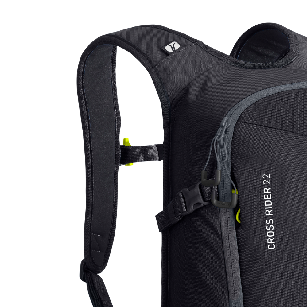 Offering practical access to the main compartment from front and back, your equipment is always readily accessible. It also features hydration system compatibility for athletic ascents and descents. Selected fastening options for skis, snowboards, ice ax and poles, as well as a helmet net and hip pocket, make the CROSS RIDER 22 an extremely versatile companion.