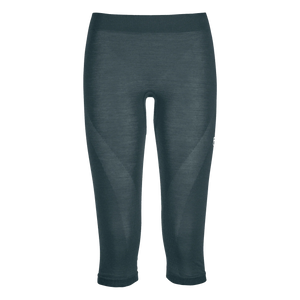 Consisting of a high proportion of merino wool, this line is now even lighter! What makes our 120 COMP LIGHT SHORT PANTS for women so special is that they are produced using an almost entirely seamless circular knitting technique, so that different material strengths can be used in different areas. A fine ribbed structure made from 120 g/mti² MERINO gives our three-quarter, functional long johns elasticity for maximum freedom of movement, while a particularly breathable mesh structure ensures opmum air circulation in the areas of the body that generate the most heat.